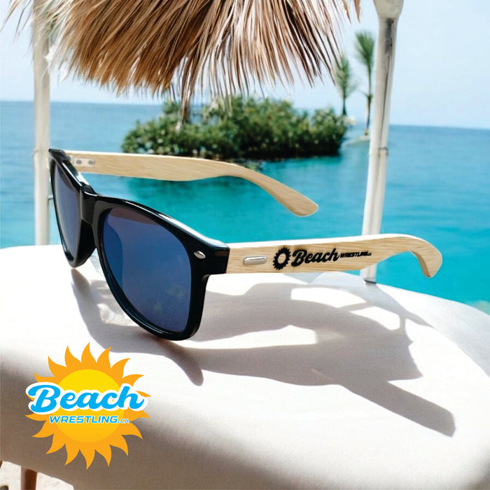 These Beach Wrestling Sunglasses are an essential for all outdoor activities. The bamboo arms provide a lightweight and durable fit while the blue reflective lenses offer 100% UV protection. Keep your eyes protected in style with these Silver Knight sunglasses. Comes complete in a microfiber sleeve. Blue reflection lens